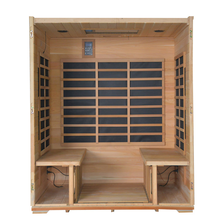 Crafted from Canadian fir and red cedar, it delivers a natural forest aroma the moment you enter, while 11 far-infrared heating panels (2600W / 240V) gently penetrate deeper than traditional steam saunas — restoring circulation, easing tension and helping you breathe easier again.
